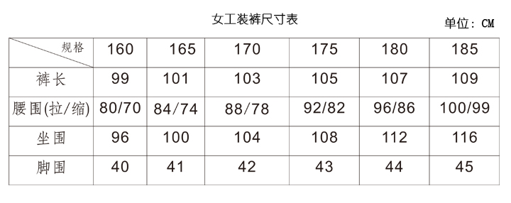 如果少數(shù)員工無(wú)法找到對(duì)應(yīng)的尺碼,可依據(jù)您提供的升高體重腰圍來(lái)制作,特體制作每件收取100元制作費(fèi)用。